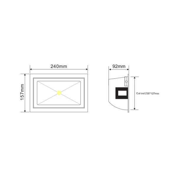 | RAV50SLF51 | AC110-265V | 50W | 5500-6000lm | 240*157*92mm | 40 | 100° | 225*127mm |